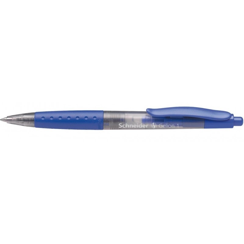 Pix SCHNEIDER Gelion 1, corp transparent cu clema si rubber grip culoare albastra - scriere albastra