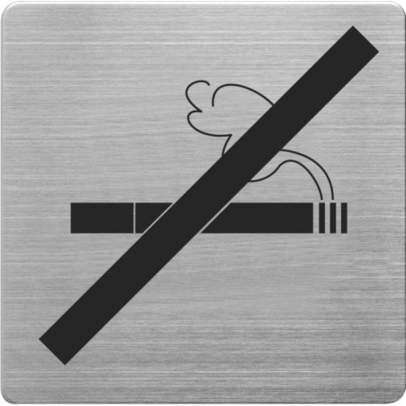 Placuta cu pictograma ALCO, din otel inoxidabil, imprimate cu negru - fumatul interzis