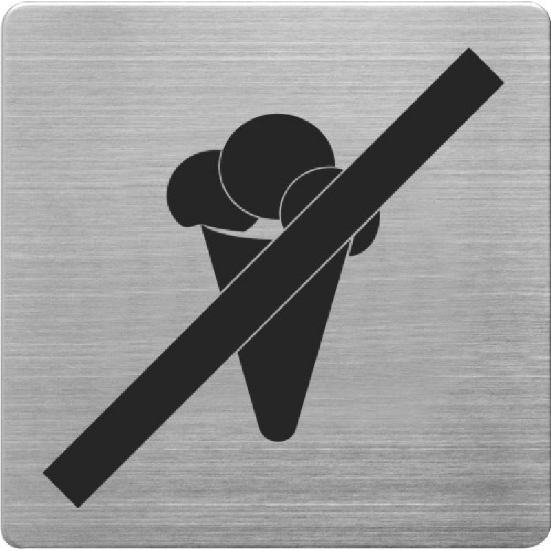 Placuta cu pictograma ALCO, din otel inoxidabil, imprimate cu negru - interziz mancatul inghetatei