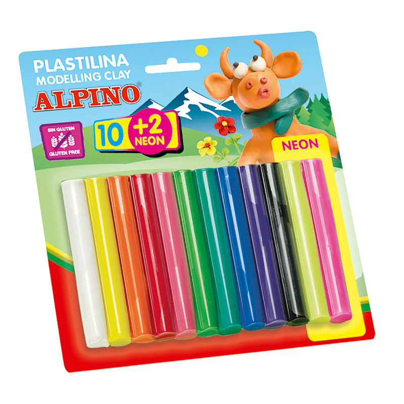 Plastilina standard, 10 + 2 neon x 17 gr./blister, ALPINO - 12 culori asortate