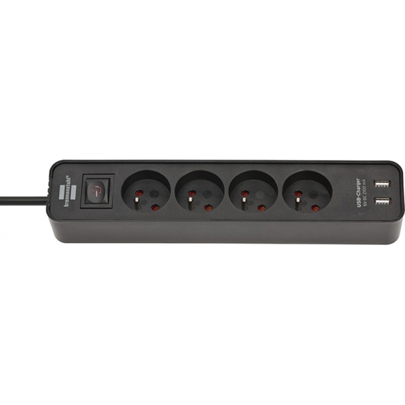 Prelungitor BRENNERSTUHL Ecolor, 4 prize, cablu 1.5 m, intrerupator, 2 porturi USB - negru