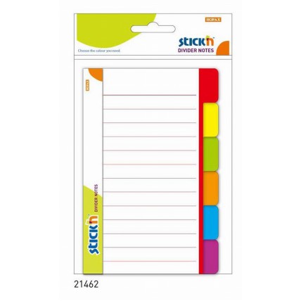Fără TVA:3,89€Divider notes autoadeziv liniat cu 6 separatoare, 148 x 98 mm, 60 file, Stick"n - 6 culori neon