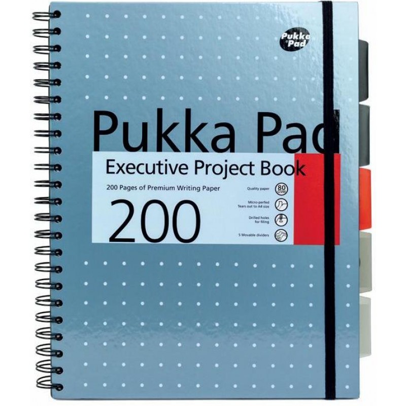 Project Book Executive A4, 125 file 80g/mp, cu spirala dubla, coperti PP, PUKKA Metallic - dictando