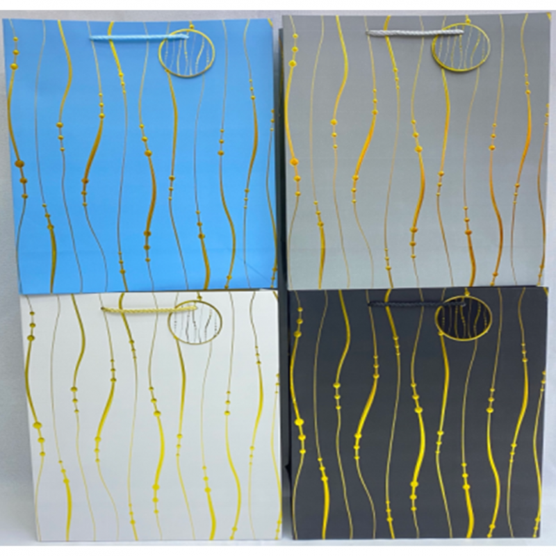 • Punga cadou, carton embosat, design Gold Stripes, 32x26x10cm, modele asortate