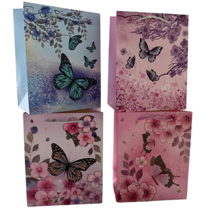• Punga cadou, carton glitter 210gr, design Butterfly, 26x32x10cm, modele asortate