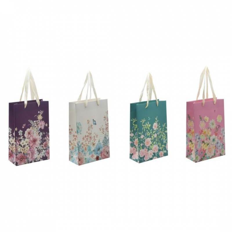 Punga cadou, carton glitter 210gr, design Flowers, 26x32x10cm, modele asortate