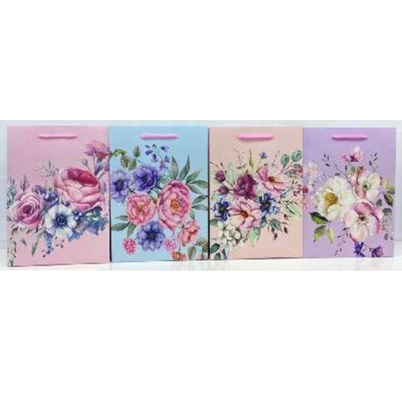 Punga cadou, carton mat 210g, design Pastel Flowers, 18x23x10cm, modele asortate