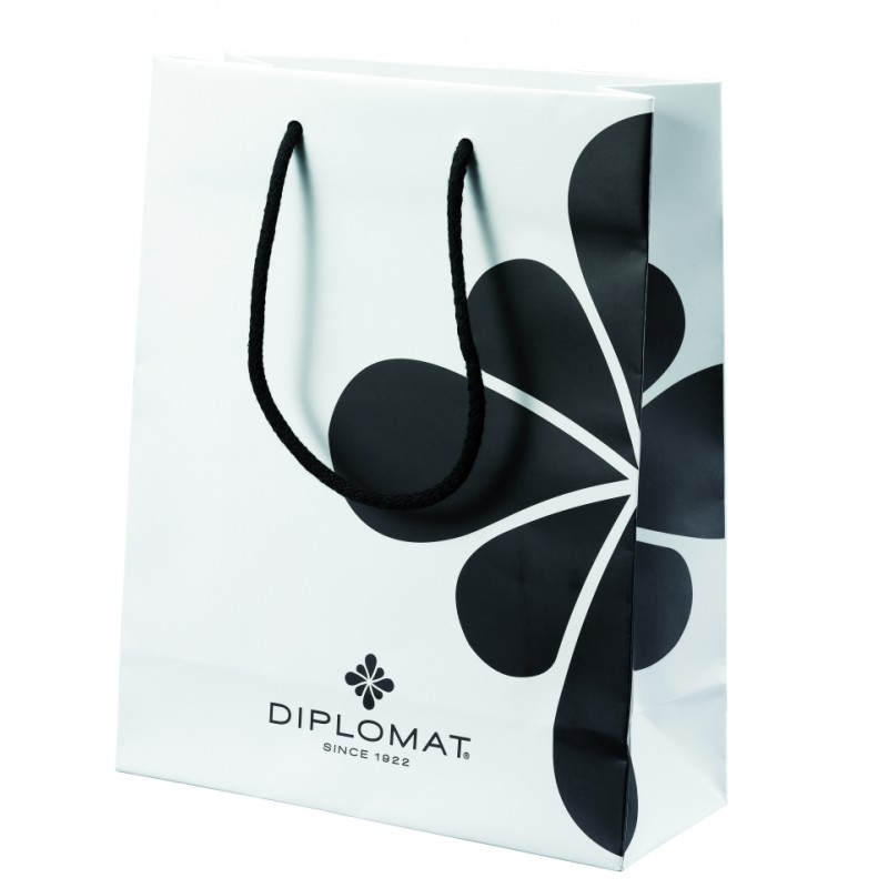 Punga din hartie inscriptionata cu logo Diplomat, pentru cadouri.