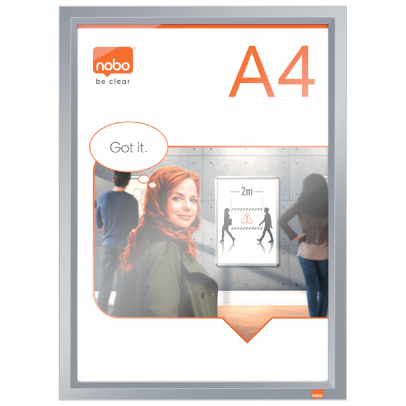 Rama pentru perete NOBO Impression Pro, aluminiu, cu clip, A4, gri