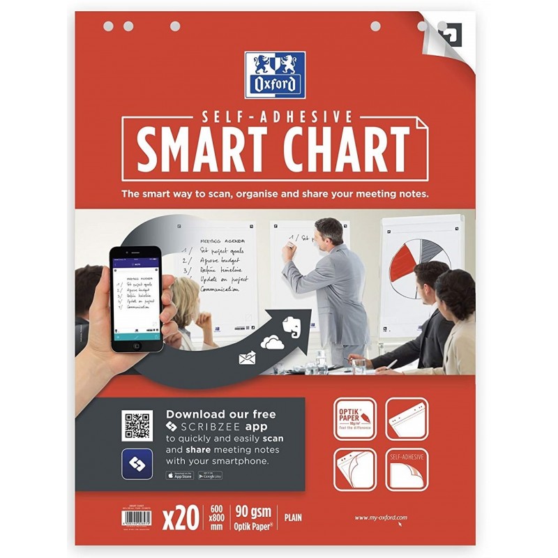 Rezerva hartie flipchart, 60x80cm, OXFORD, repozitionabila, 20coli/top, 90g/mp, Scribzee - velina