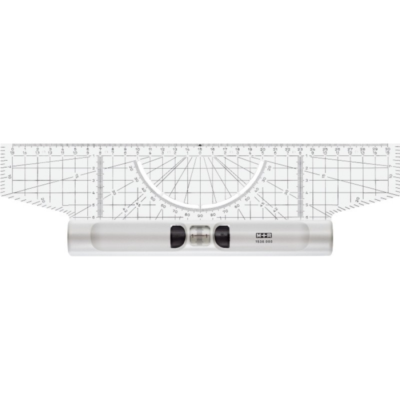 Rigla din plastic cu scale si raportor prevazuta cu roler.