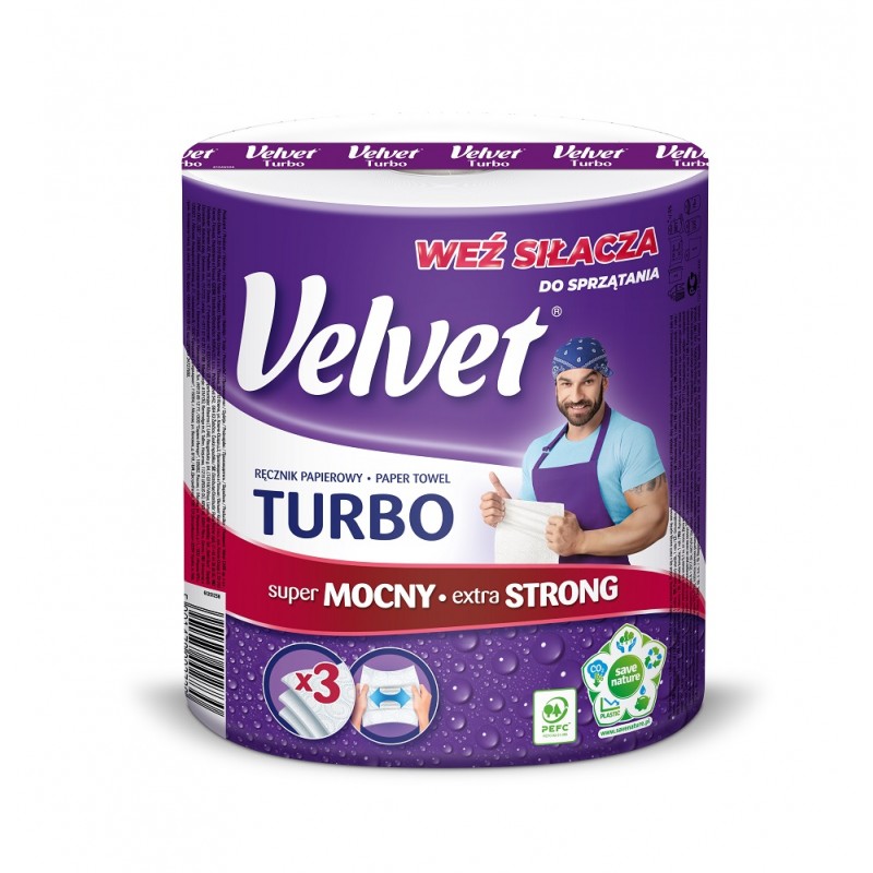 Velvet TURBO Giga Roll este un prosop de bucatarie extrem de eficient. Durabilitatea si performanta ridicate va ajuta sa curatati rapid si eficient fiecare loc din casa.