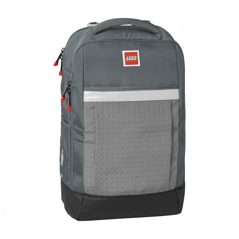 Ghiozdanul este captusit cu perne de aer in forma de caramida Lego, fiind potrivit pentru adolescenti.