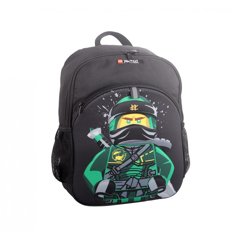 Rucsac negru LEGO M-Line, cu buzunar frontal - design verde Ninjago Lloyd