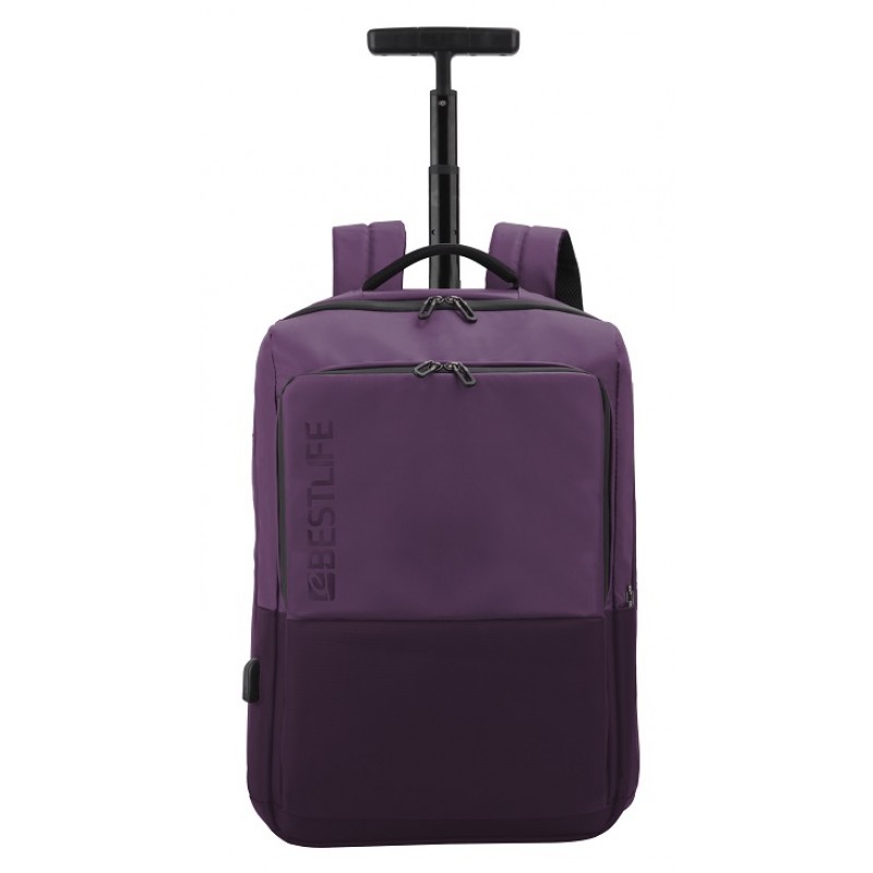 Rucsac troller BESTLIFE Neoton, 50x34x22cm, compartiment tableta si laptop 15.6 inch, negru/mov