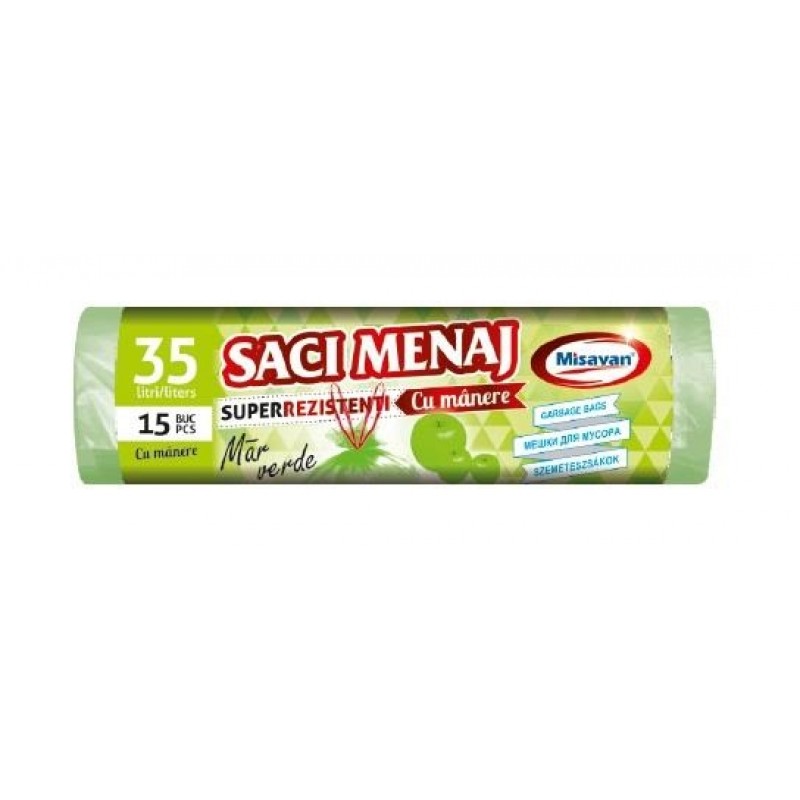 Saci menaj super rezistenti cu manere 35L, 15 buc/rola, Misavan