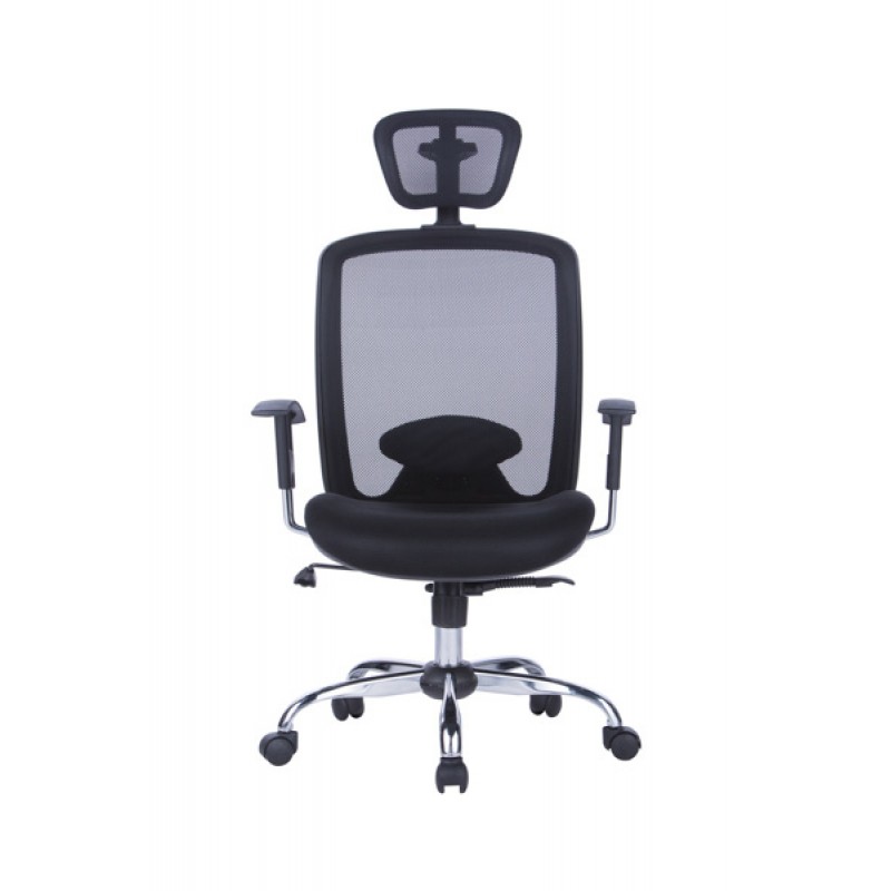 • Scaun de birou, brate plastic, rotile, mesh textil, cu tetiera, Office Products Samos - negru