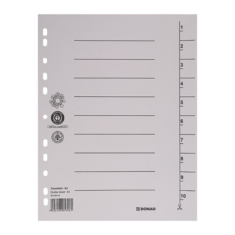 Separatoare carton manila 250g/mp, 300 x 240mm, 100/set, DONAU - gri