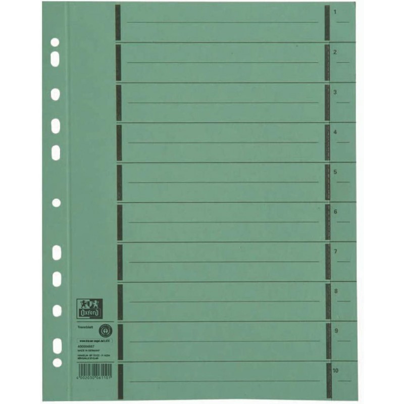 Separatoare carton manila 250g/mp, 300 x 240mm, 100/set, OXFORD - verde