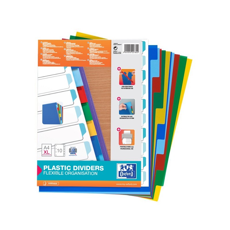 Separatoare plastic color, A4 XL, 120 microni, 10 culori/set, OXFORD