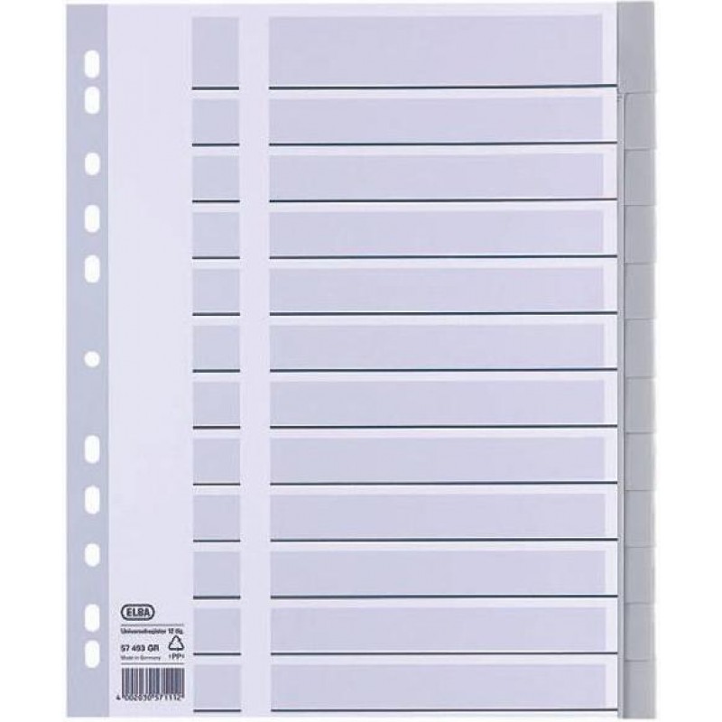• Separatoare plastic gri personalizabil, A4 XL, 200 microni, 12 file/set, ELBA