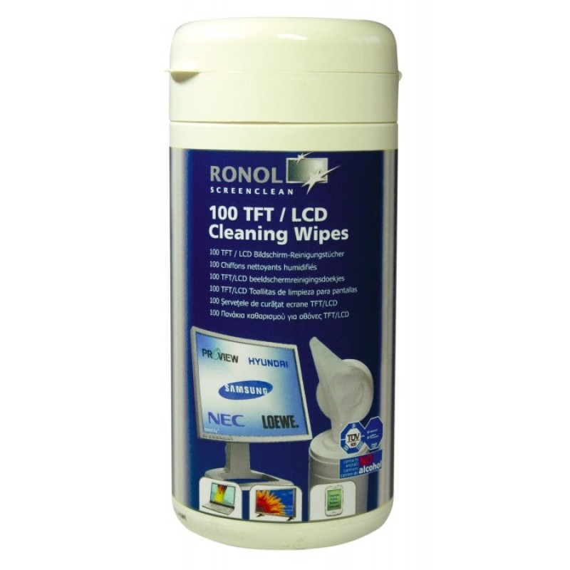 Servetele curatare monitoare CRT/TFT, 100/tub (50umede/50uscate), RONOL