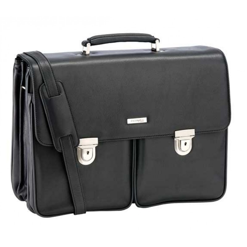 Servieta laptop de lux ENZO ROSSI Roma - piele neagra