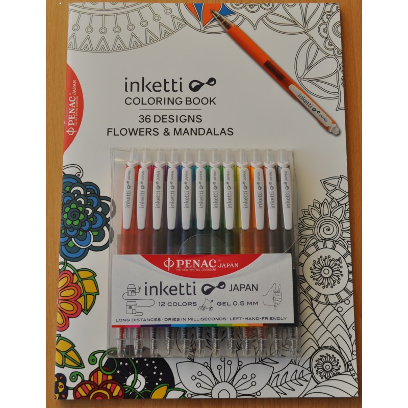 Set 12 pixuri cu gel PENAC Inketti, culori asortate + carte de colorat