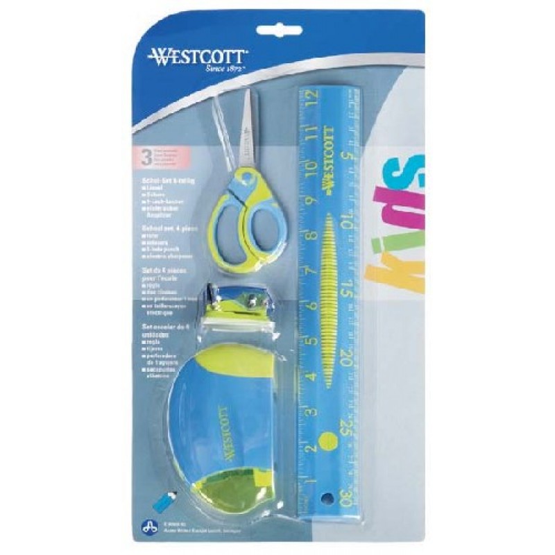 Set accesorii scoala, din plastic color, WESTCOTT - albastru/verde