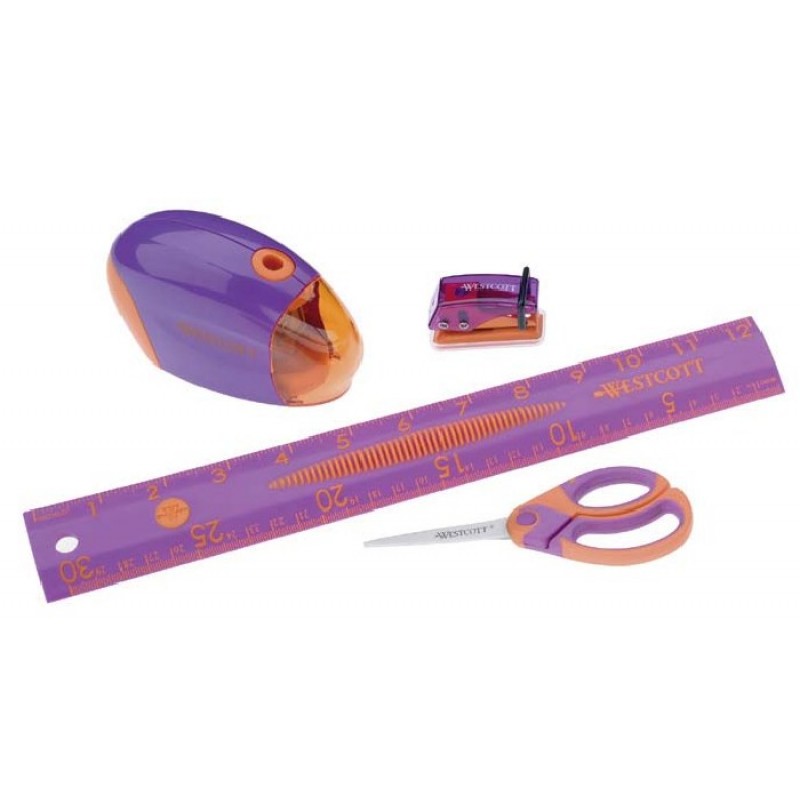 Set accesorii scoala, din plastic color, WESTCOTT - roz/portocaliu