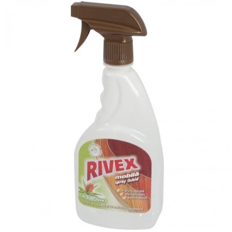 Cod produs:RIVEX500Solutie pentru mobila Rivex este solutia care curata, ingrijeste si protejeaza mobila datorita formulei sale imbogatite cu ceara de albine si datorita efectului antistatic.