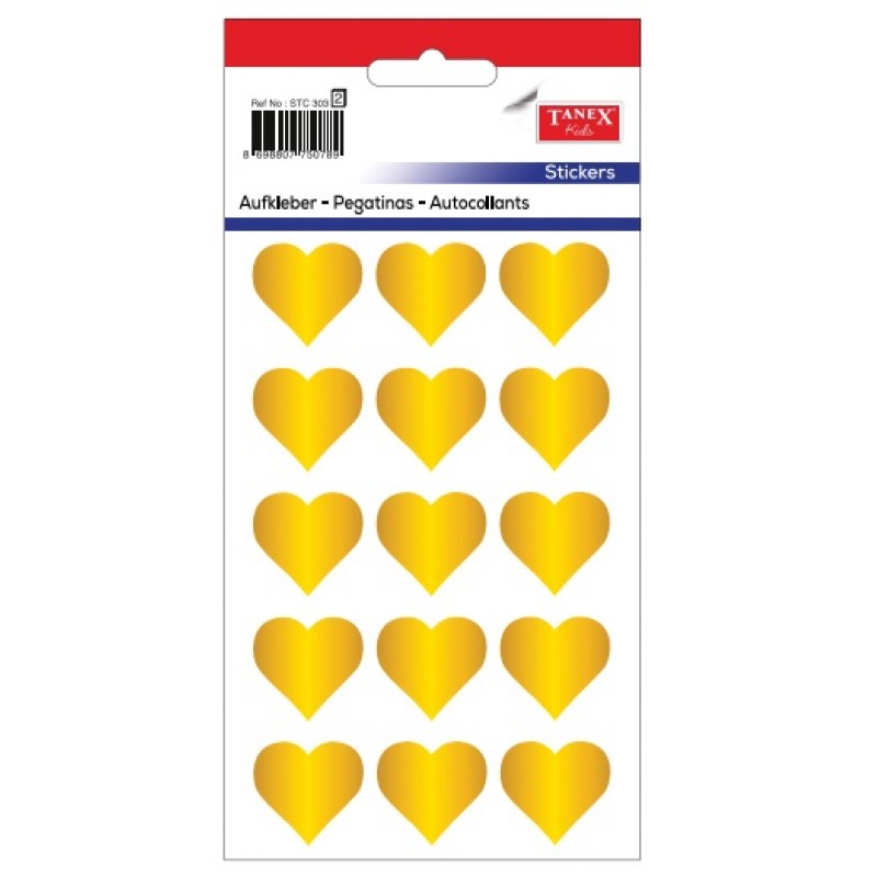 • Stickere decorative, 12 buc/fila, 5 file/set, TANEX Kids - inimi - aurii