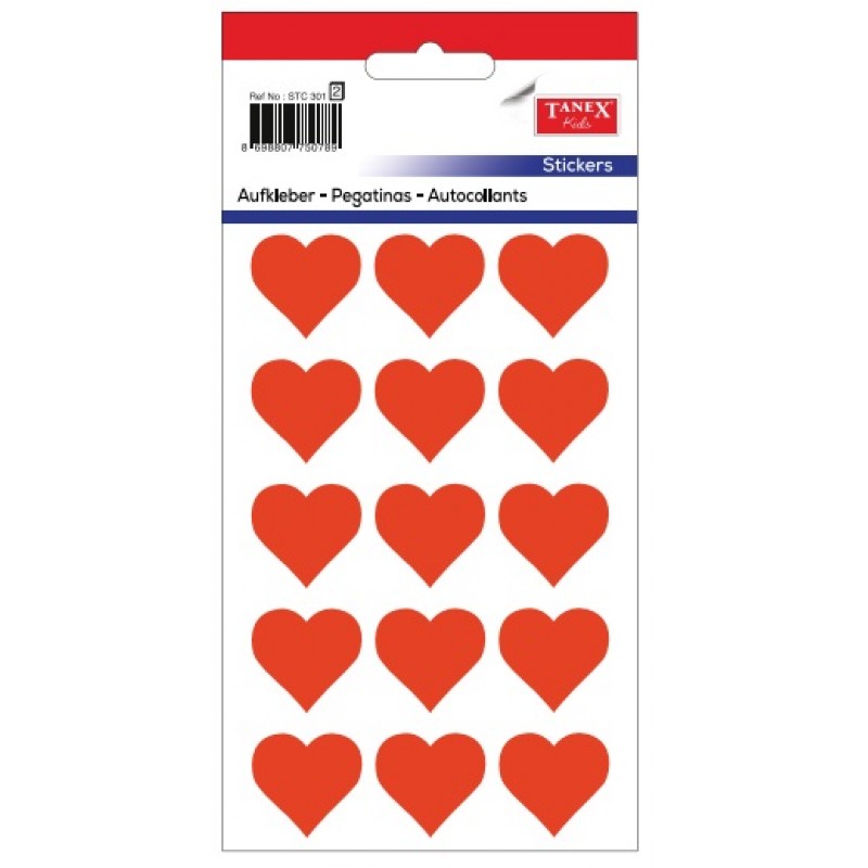 • Stickere decorative, 12 buc/fila, 5 file/set, TANEX Kids - inimi - rosu fluorescent