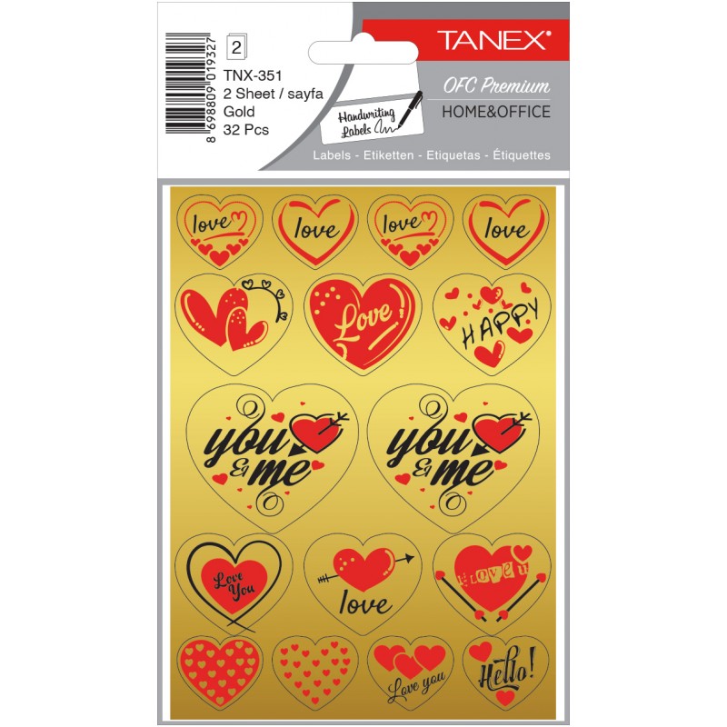 Stickere decorative, 2 file/set, TANEX Kids - inimi - aurii, TNX 351