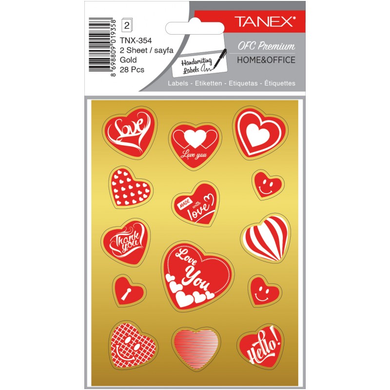 • Stickere decorative, 2 file/set, TANEX Kids - inimi - aurii, TNX 354